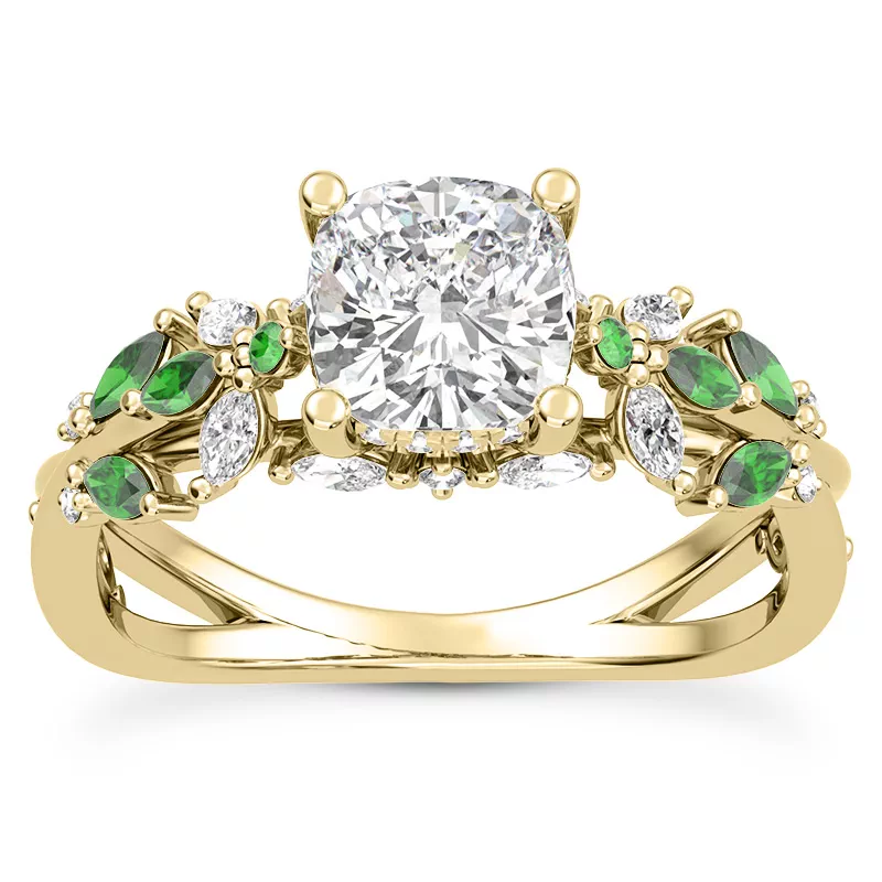 Butterfly And Bee Vine Twist Lab Emerald Engagement Ring With 5.05 Carat cushion Lab Diamond