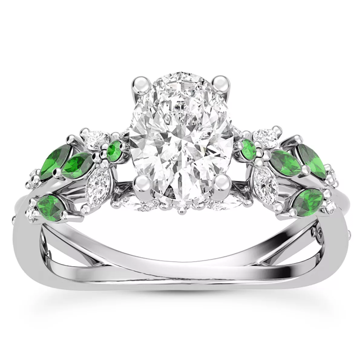 Butterfly And Bee Vine Twist Lab Emerald Engagement Ring With 1 Carat oval Lab Diamond