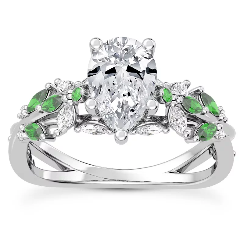 Butterfly And Bee Vine Twist Lab Emerald Engagement Ring With 2 Carat pear Lab Diamond