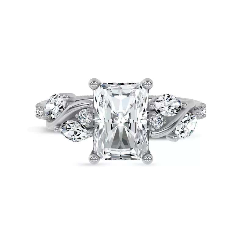 Hayden Curved Vine Hidden Halo Lab Engagement Ring With 2 Carat radiant Lab Diamond
