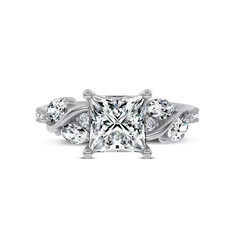Hayden Curved Vine Hidden Halo Lab Engagement Ring With 4 Carat princess Lab Diamond