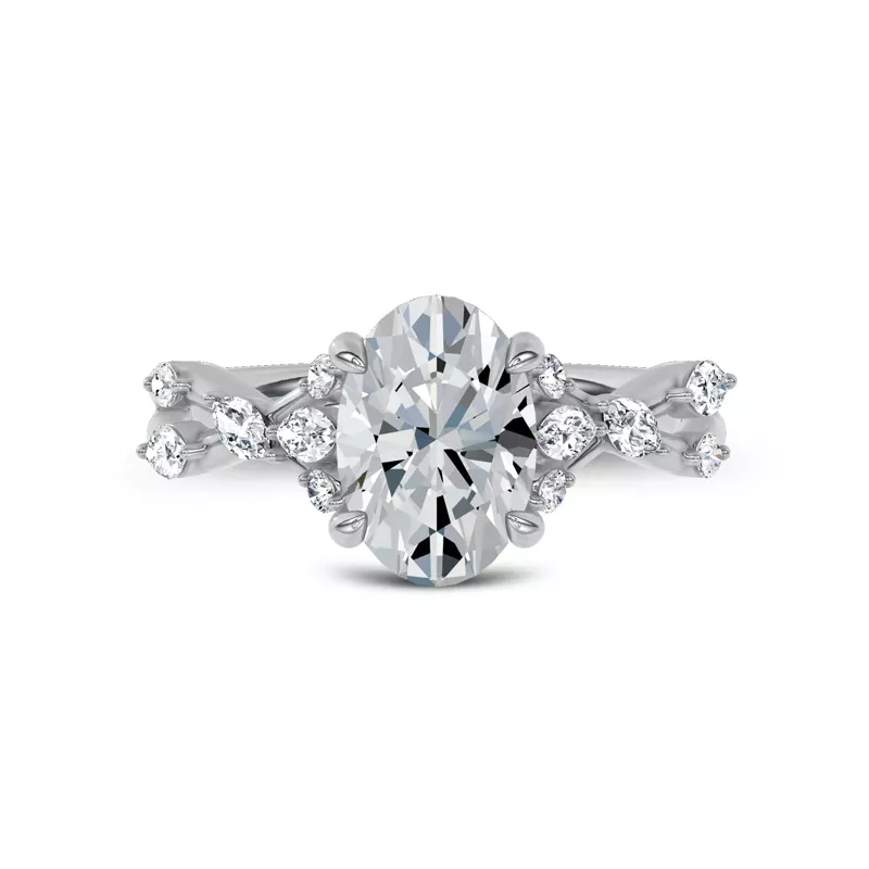 Jardin Valentina Mixed Shape Lab Engagement Ring by Christian Siriano With 5 Carat oval Lab Diamond