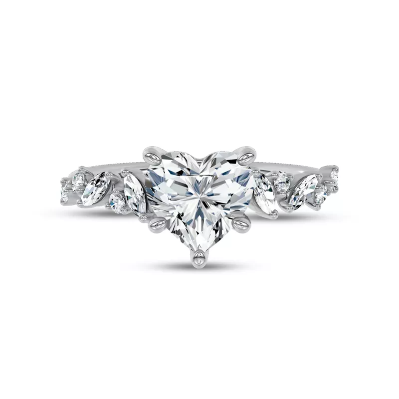 Hayley Scattered Lab Diamond Engagement Ring With 1 Carat heart Lab Diamond
