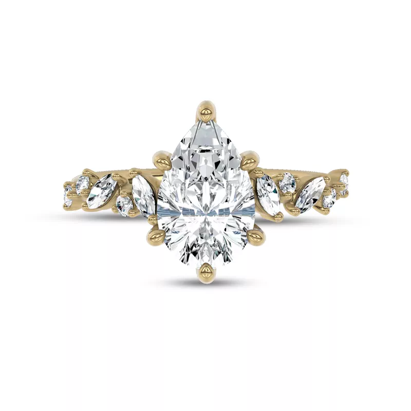 Hayley Scattered Lab Diamond Engagement Ring With 1 Carat pear Lab Diamond