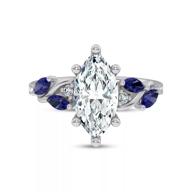Hayden Curved Vine Sapphire And Lab Diamond Engagement Ring With 1 Carat marquise Lab Diamond
