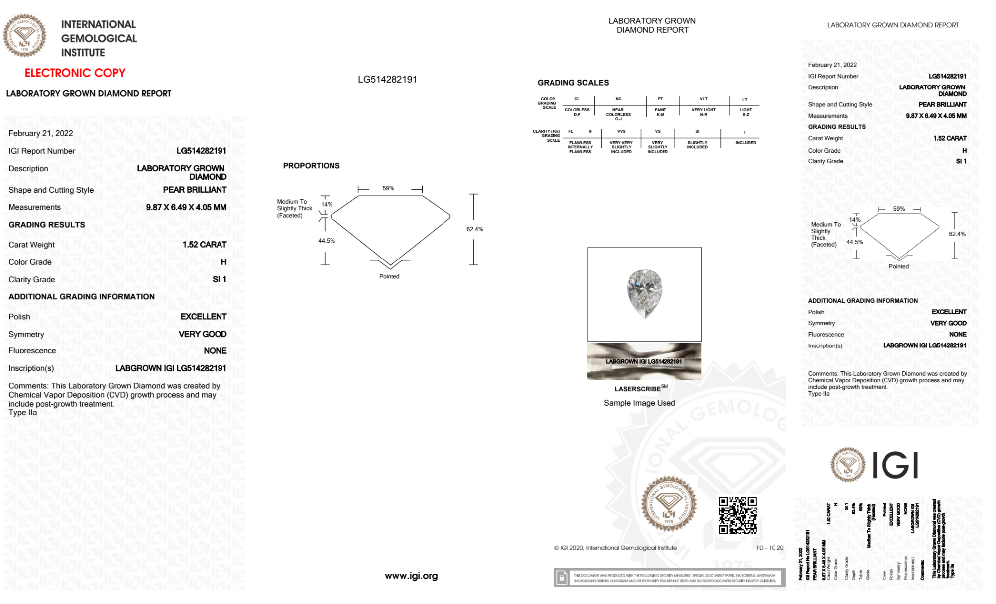 1.52 Carat pear lab Diamond