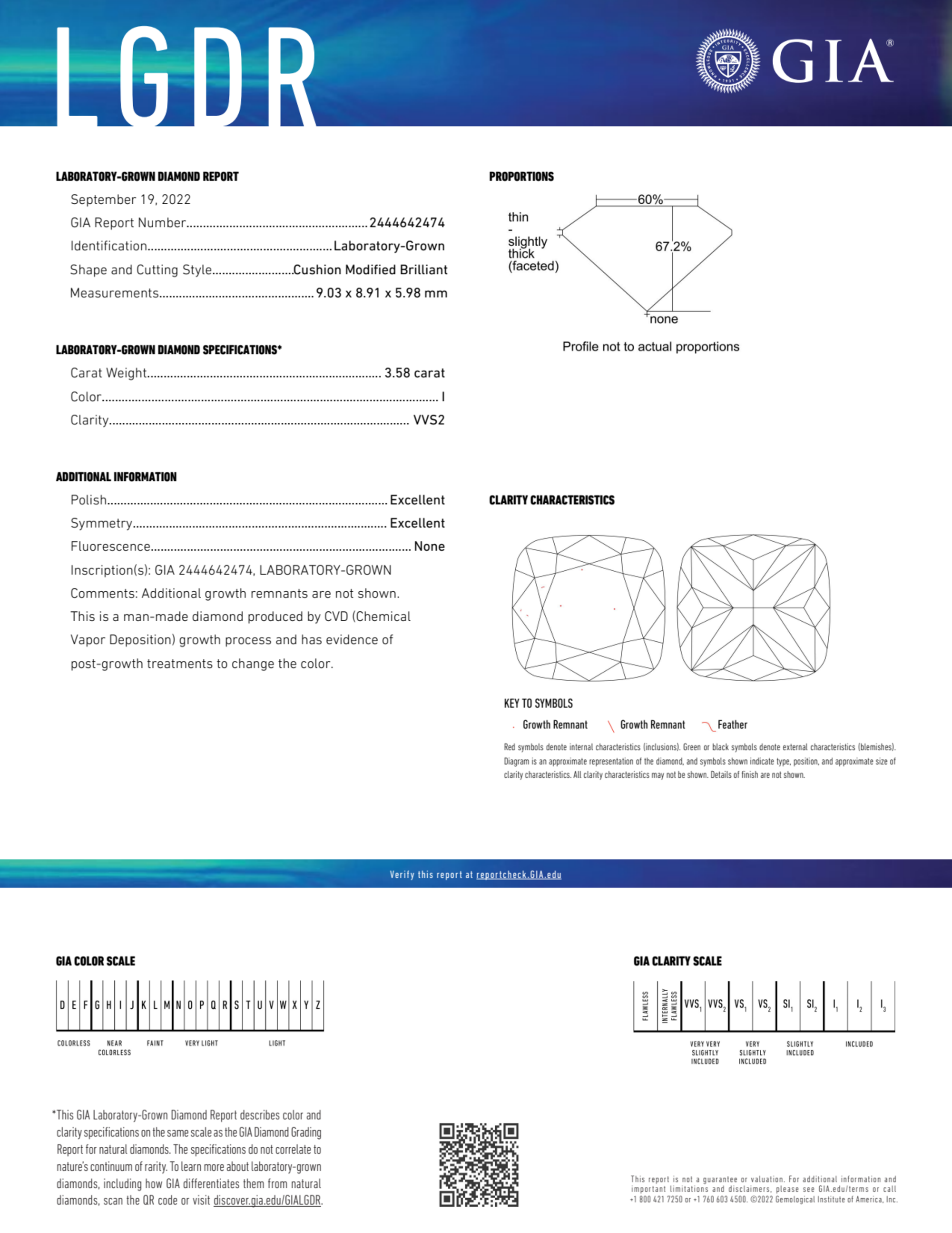 3.58 Carat cushion lab Diamond