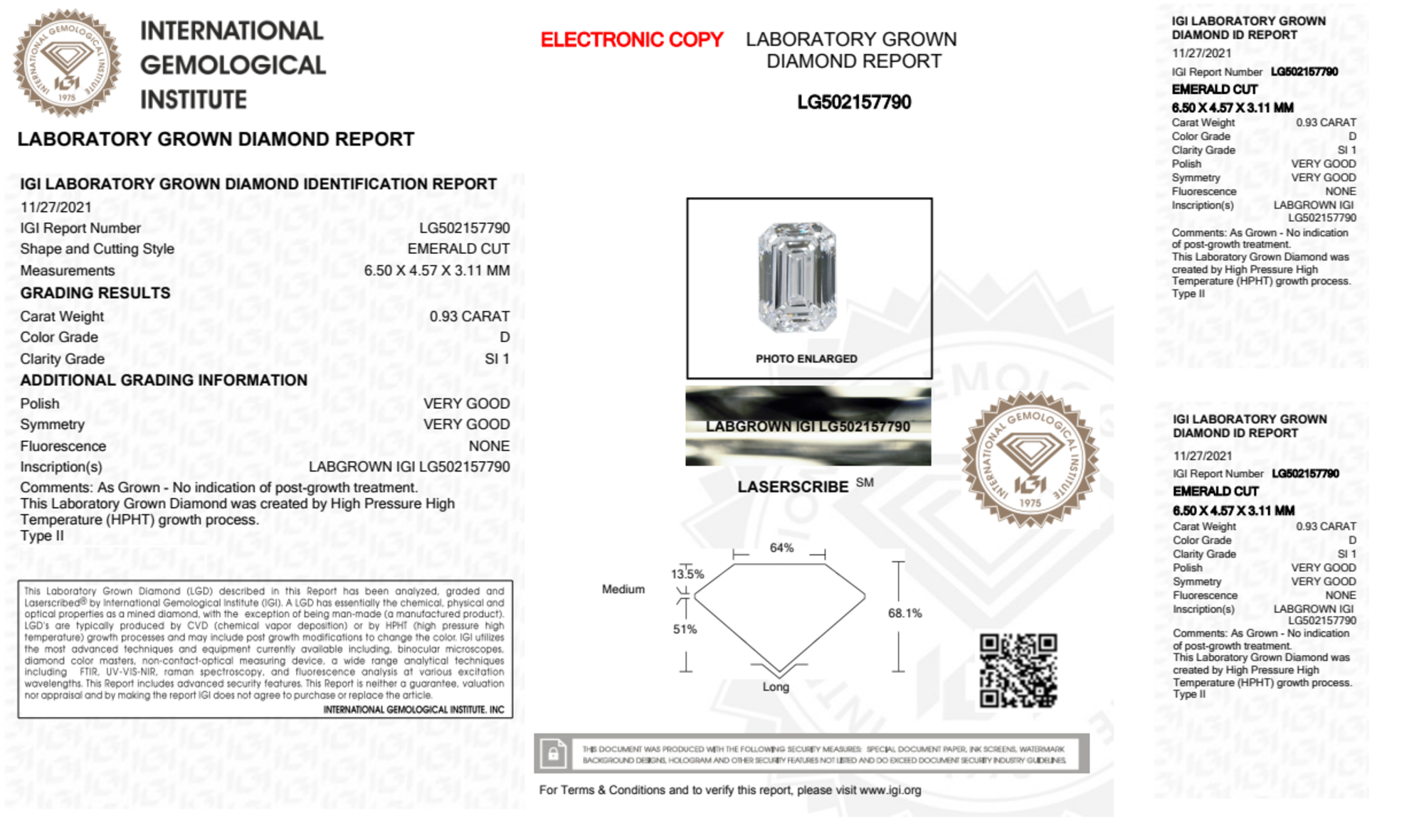 0.93 Carat emerald lab Diamond