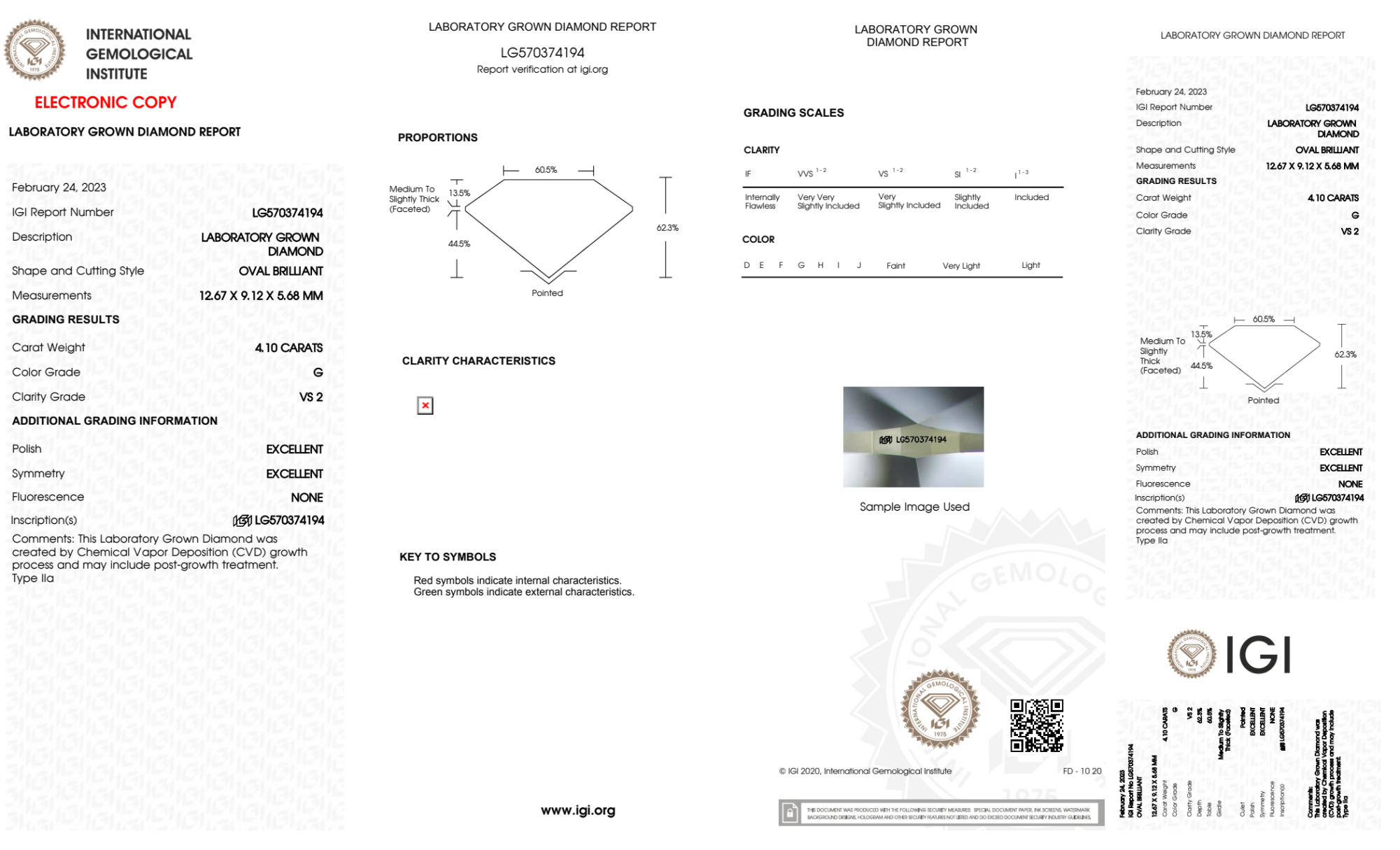 Your 4.10 carat Oval lab diamond is graded G color (Near Colorless), and you can read more about G color diamonds here.