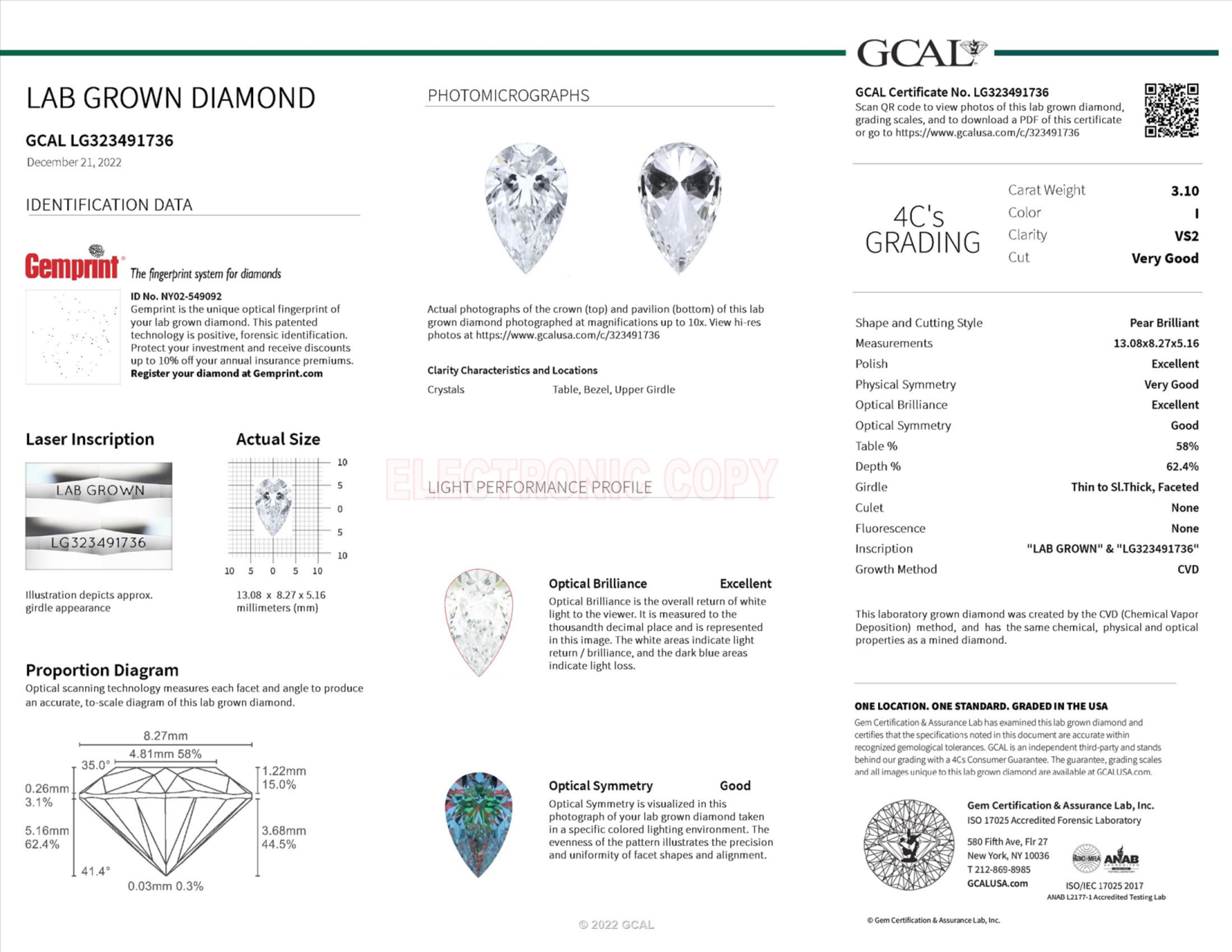 3.10 Carat pear lab Diamond