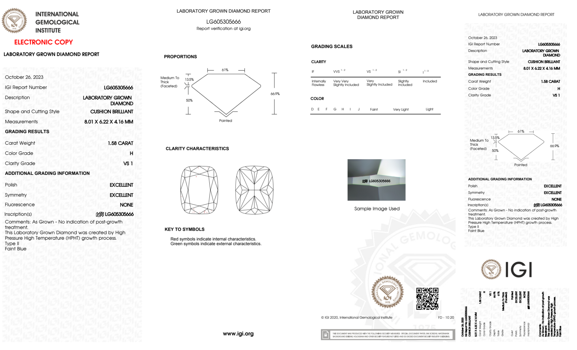 1.58 Carat cushion lab Diamond