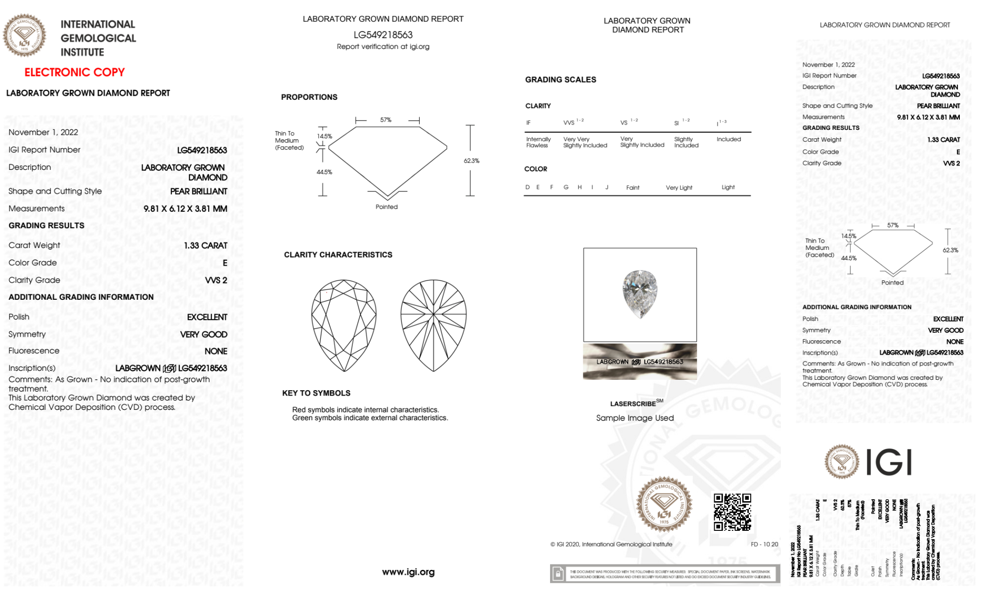1.33 Carat pear lab Diamond