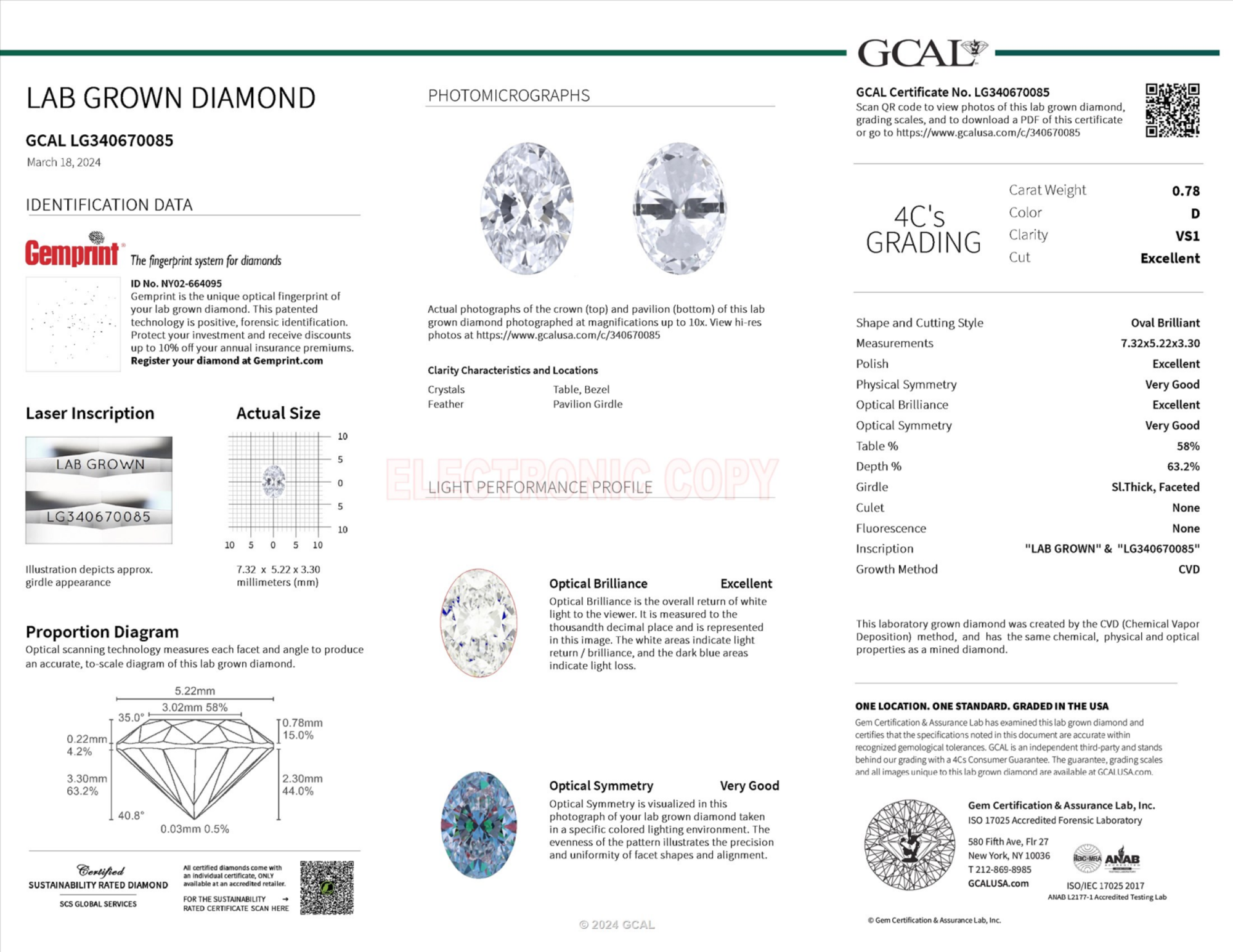 Your 0.78 carat Oval lab diamond is graded D color (Colorless), and you can read more about D color diamonds here.