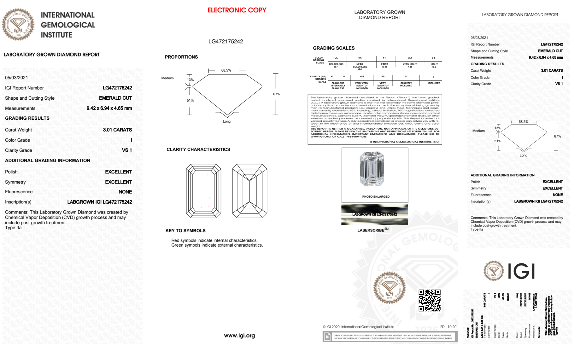 3.01 Carat emerald lab Diamond