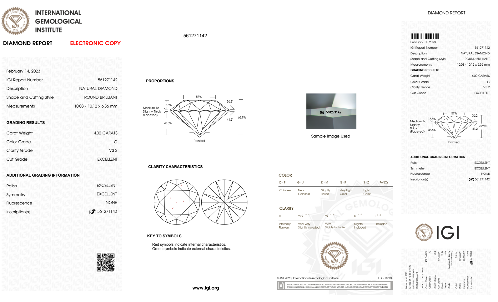 Your 4.02 carat Round natural diamond is graded G color (Near Colorless), and you can read more about G color diamonds here.