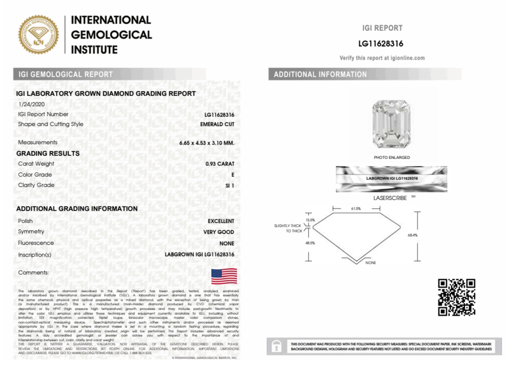 0.93 Carat emerald lab Diamond