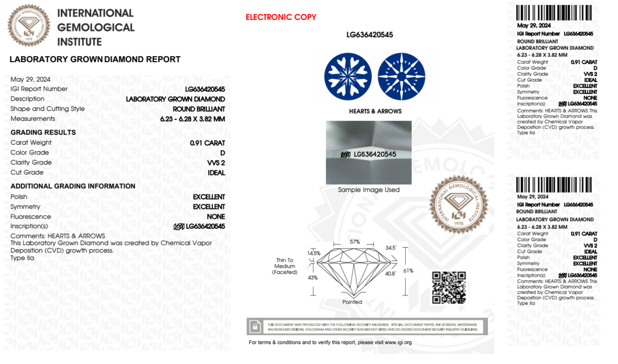 Your 0.91 carat Round lab diamond is graded D color (Colorless), and you can read more about D color diamonds here.