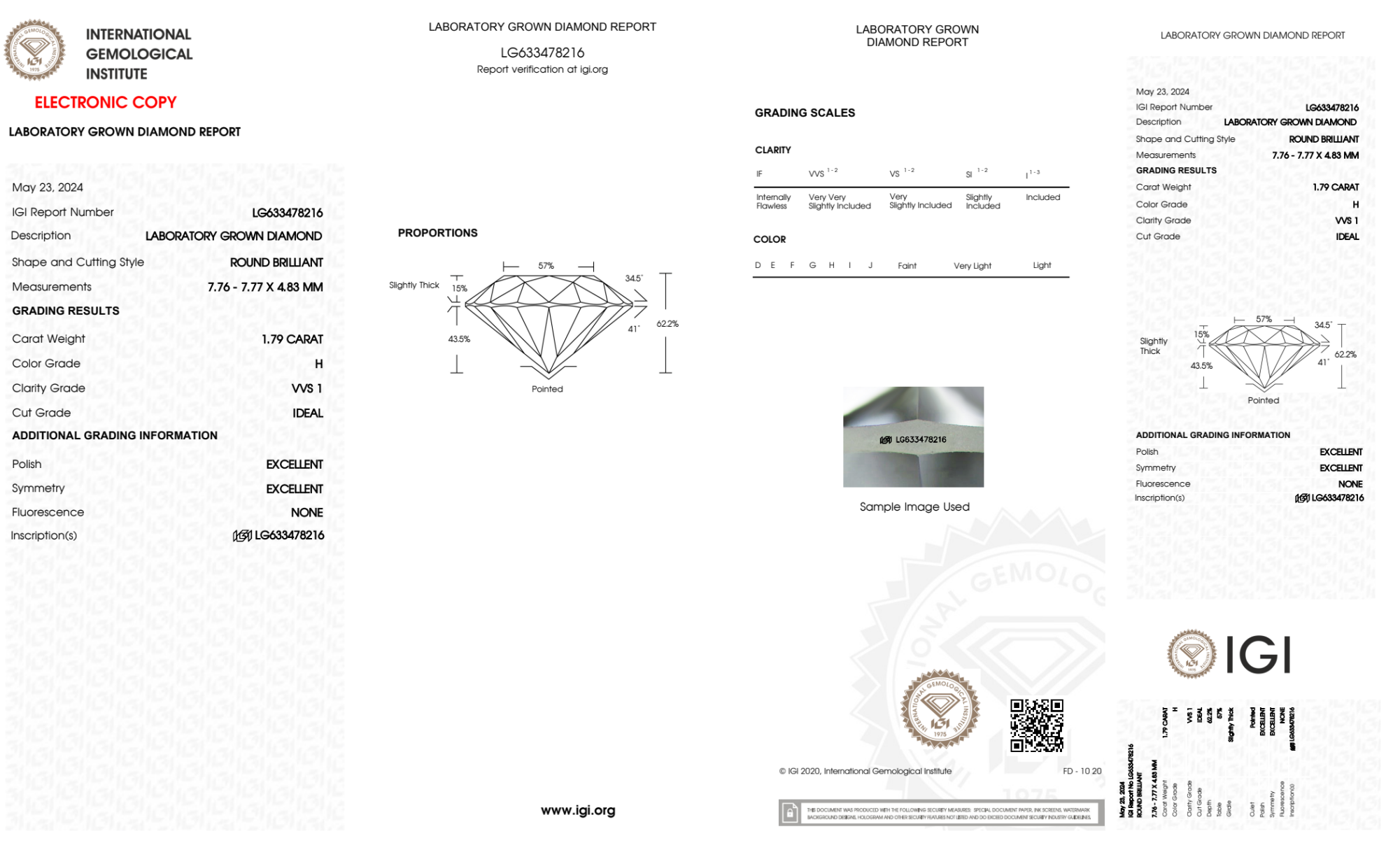 1.79 Carat round lab Diamond