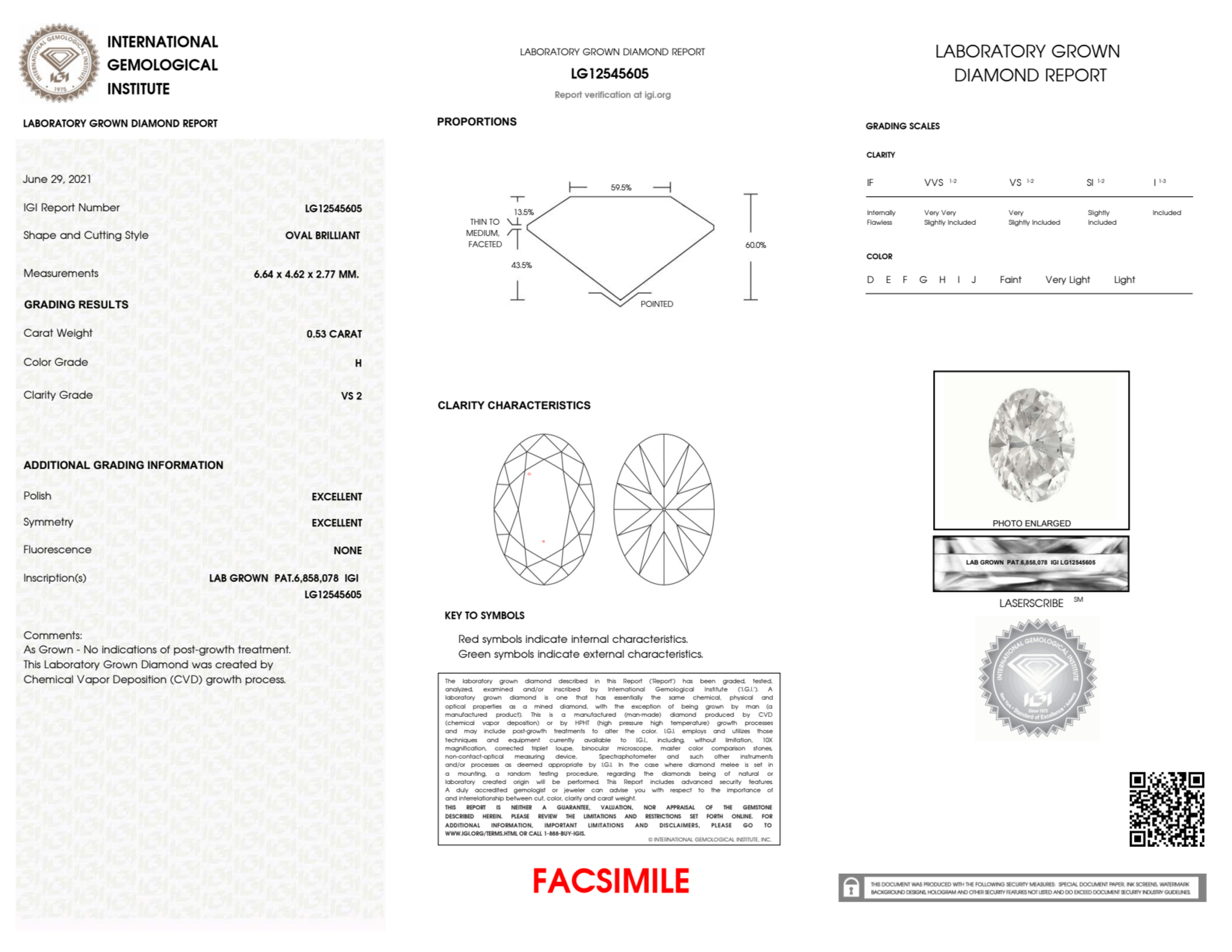 Your 0.53 carat Oval lab diamond is graded H color (Near Colorless), and you can read more about H color diamonds here.
