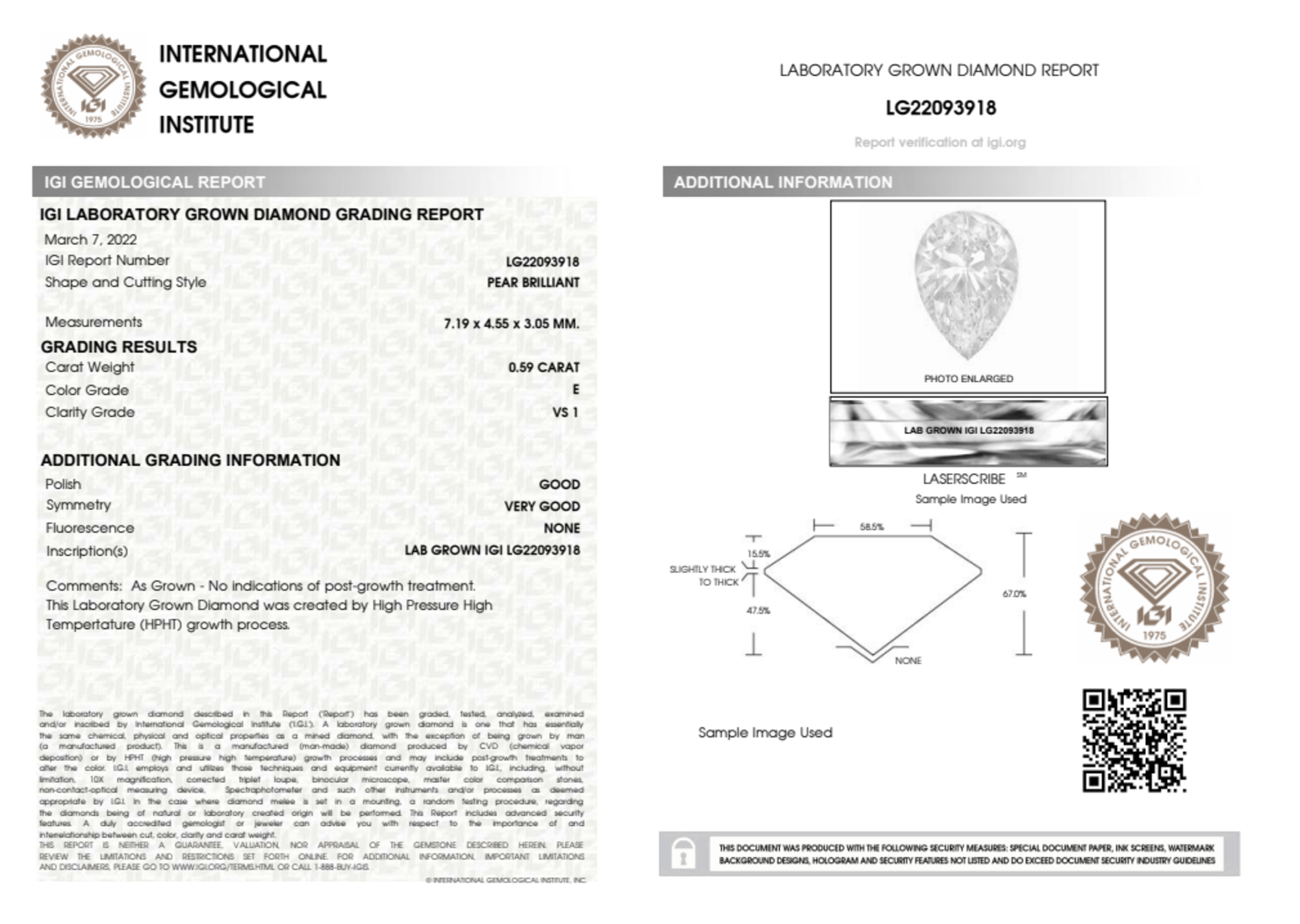 0.59 Carat pear lab Diamond