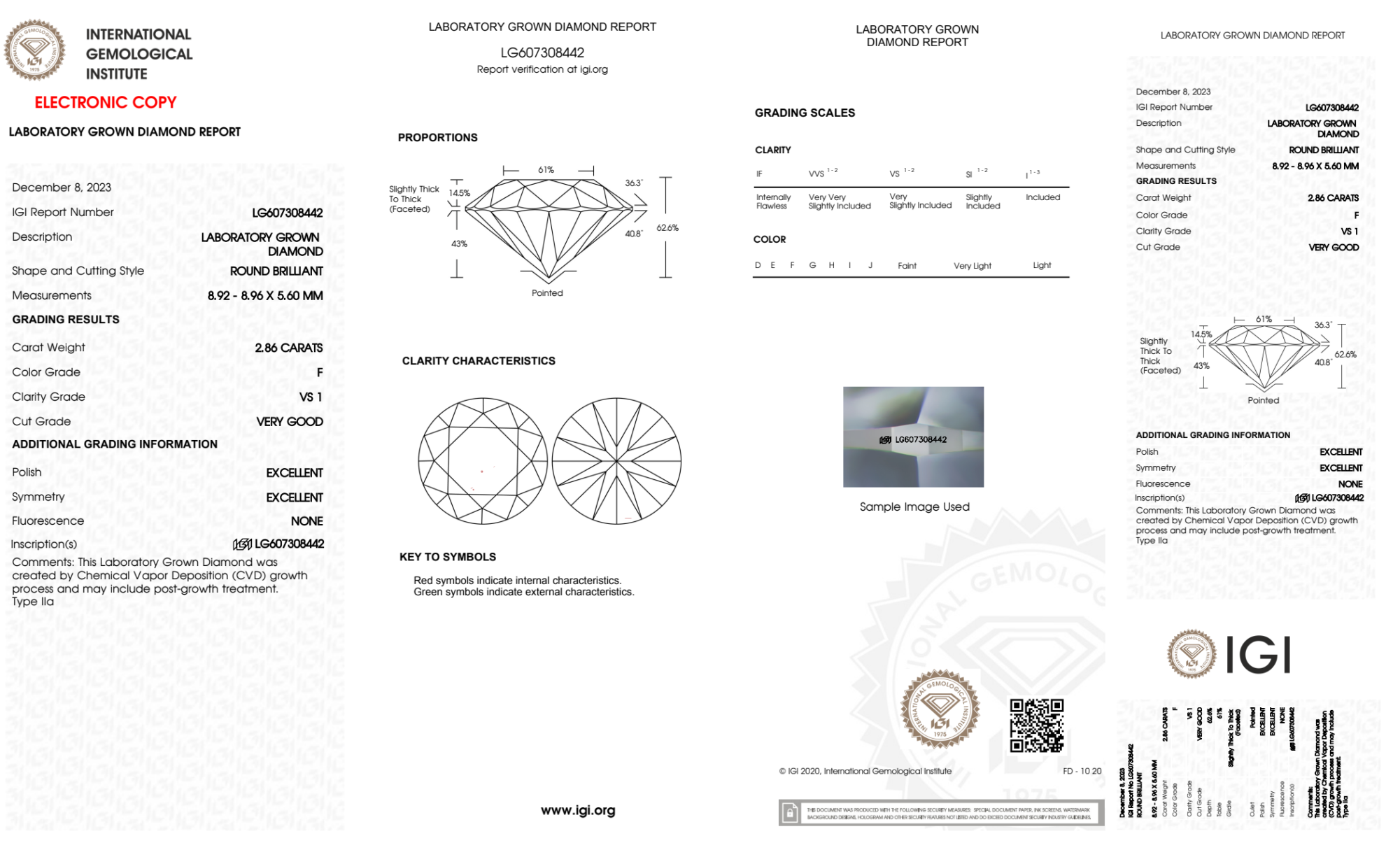 Your 2.86 carat Round lab diamond is graded F color (Colorless), and you can read more about F color diamonds here.