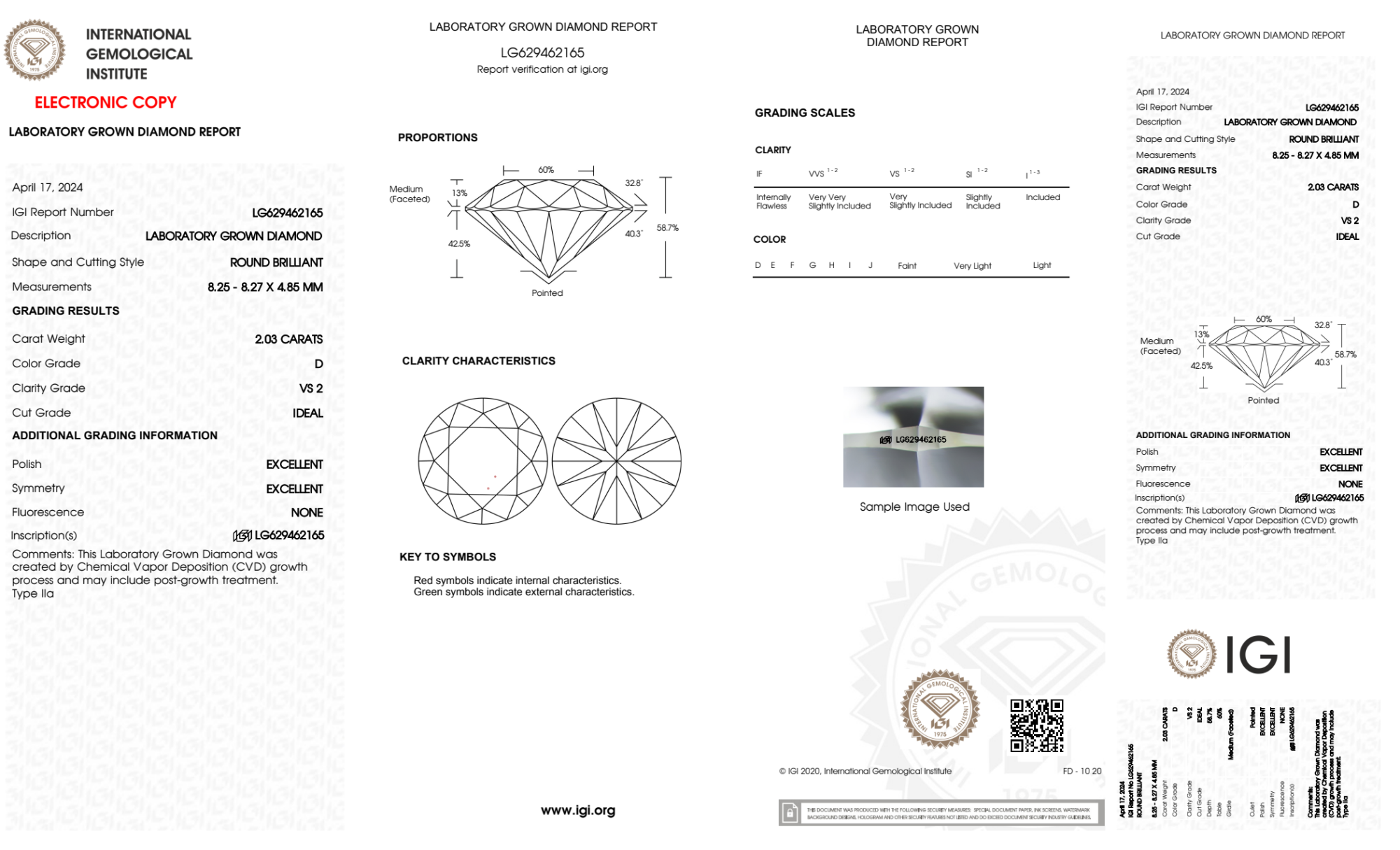 Your 2.03 carat Round lab diamond is graded D color (Colorless), and you can read more about D color diamonds here.