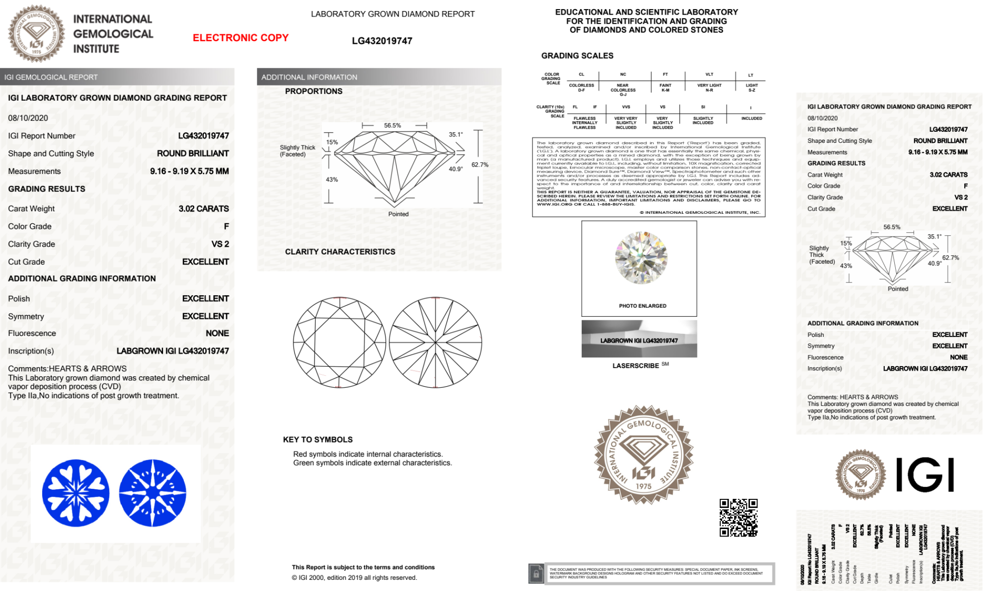 Your 3.02 carat Round lab diamond is graded F color (Colorless), and you can read more about F color diamonds here.