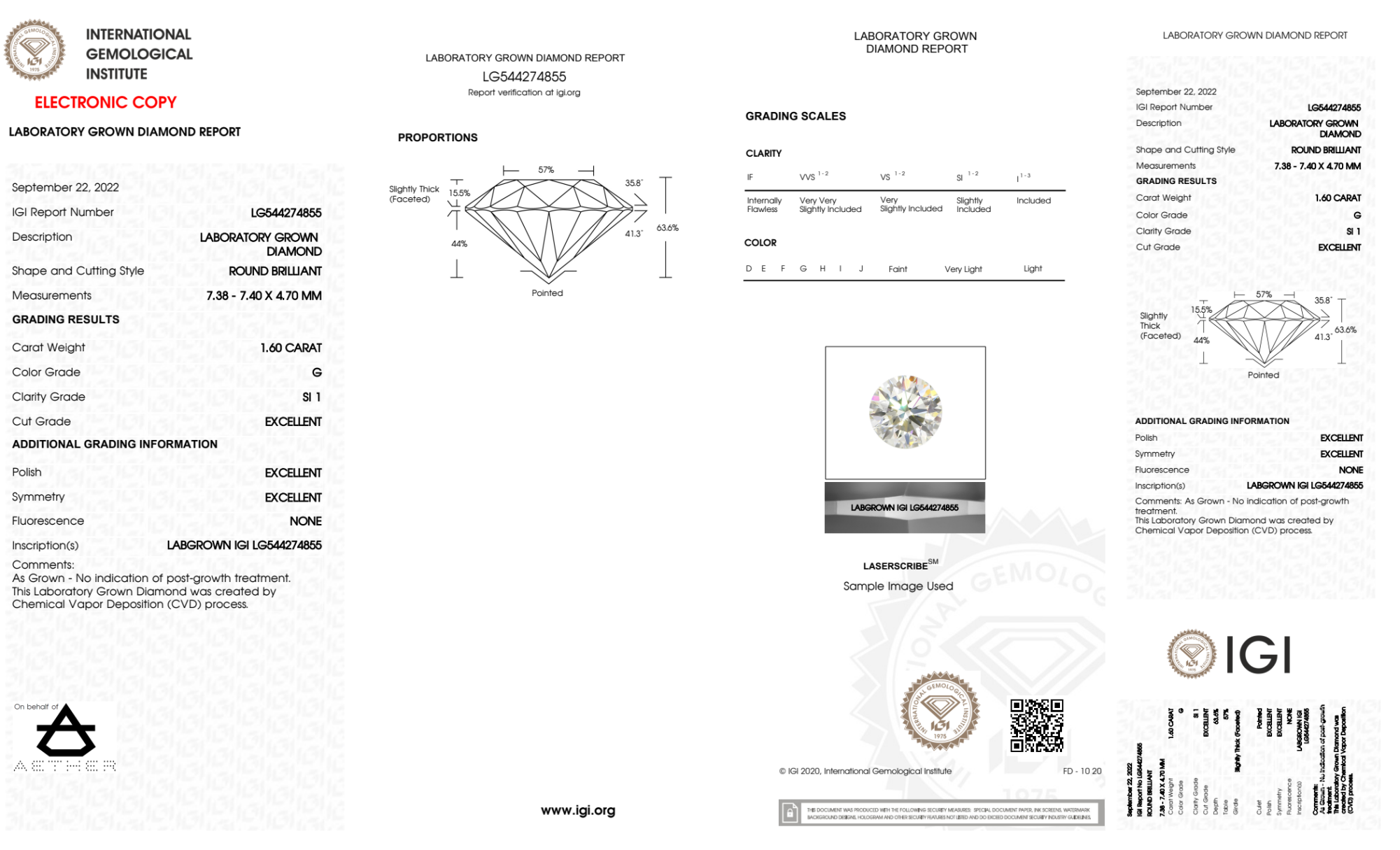 Your 1.60 carat Round lab diamond is graded G color (Near Colorless), and you can read more about G color diamonds here.