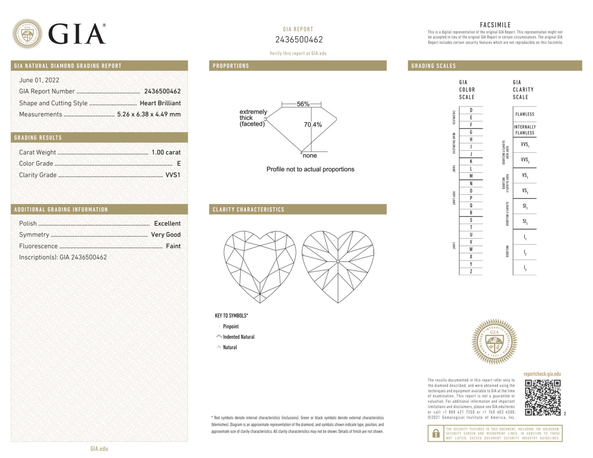 Your 1.00 carat Heart natural diamond is graded E color (Colorless), and you can read more about E color diamonds here.
