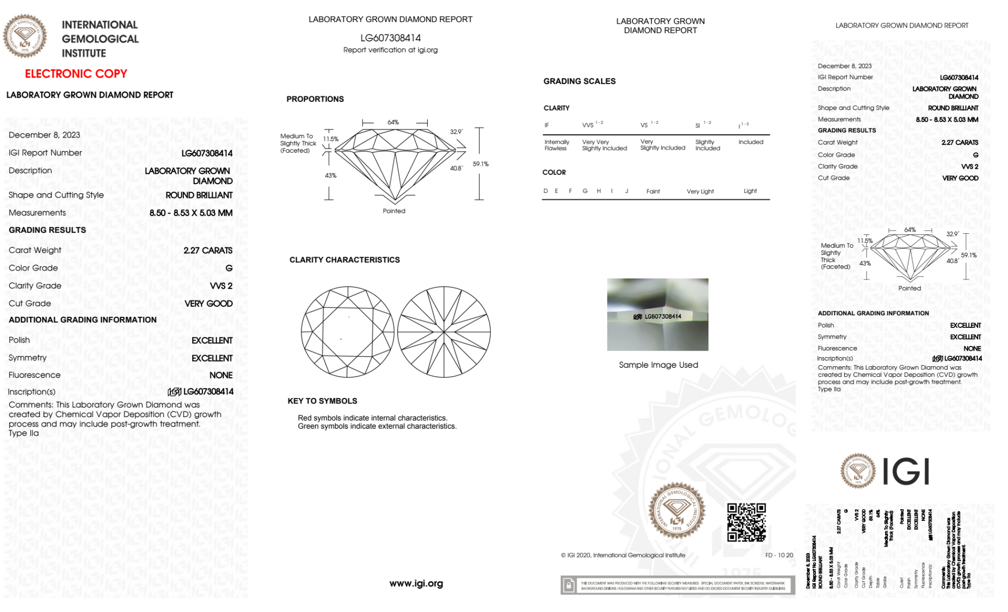 Your 2.27 carat Round lab diamond is graded G color (Near Colorless), and you can read more about G color diamonds here.