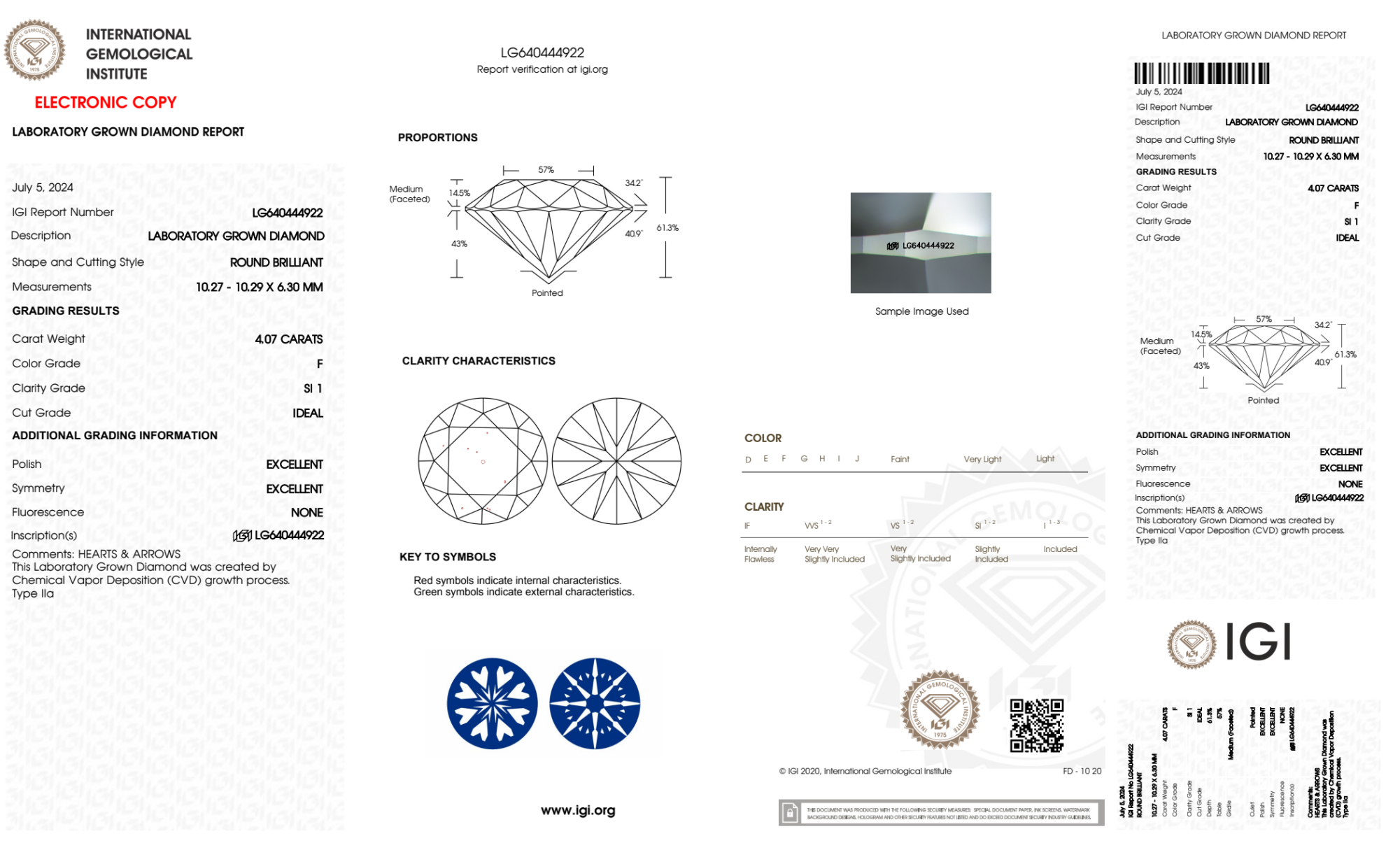 Your 4.07 carat Round lab diamond is graded F color (Colorless), and you can read more about F color diamonds here.