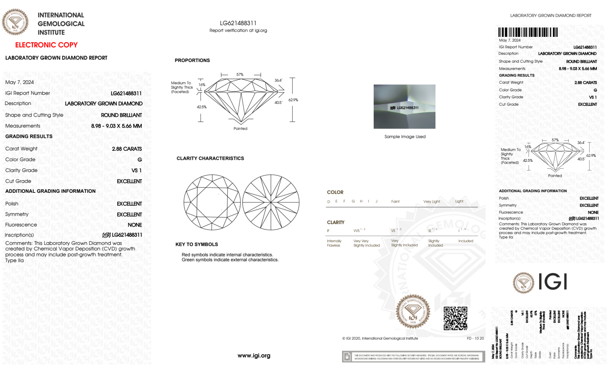 Your 2.88 carat Round lab diamond is graded G color (Near Colorless), and you can read more about G color diamonds here.