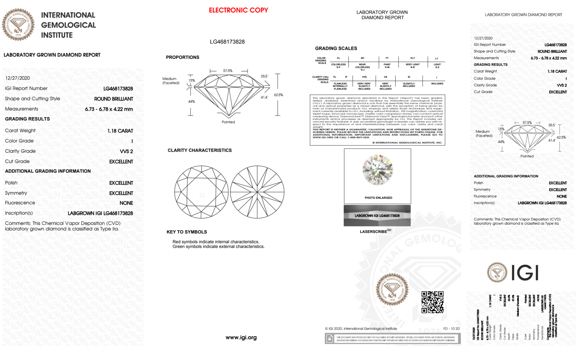Your 1.18 carat Round lab diamond is graded I color (Near Colorless), and you can read more about I color diamonds here.