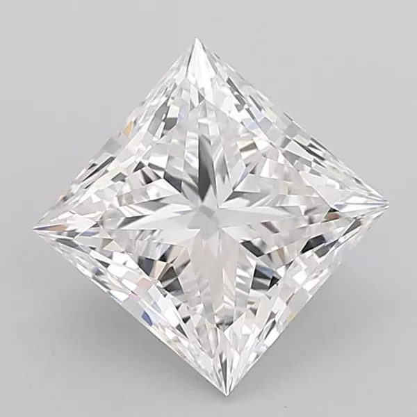 Your 4.59 carat Princess lab diamond is graded VVS2 clarity, which stands for Very Very Slightly Included 2. Read more about VVS2 clarity diamonds here, or learn more about diamond clarity in general here.
