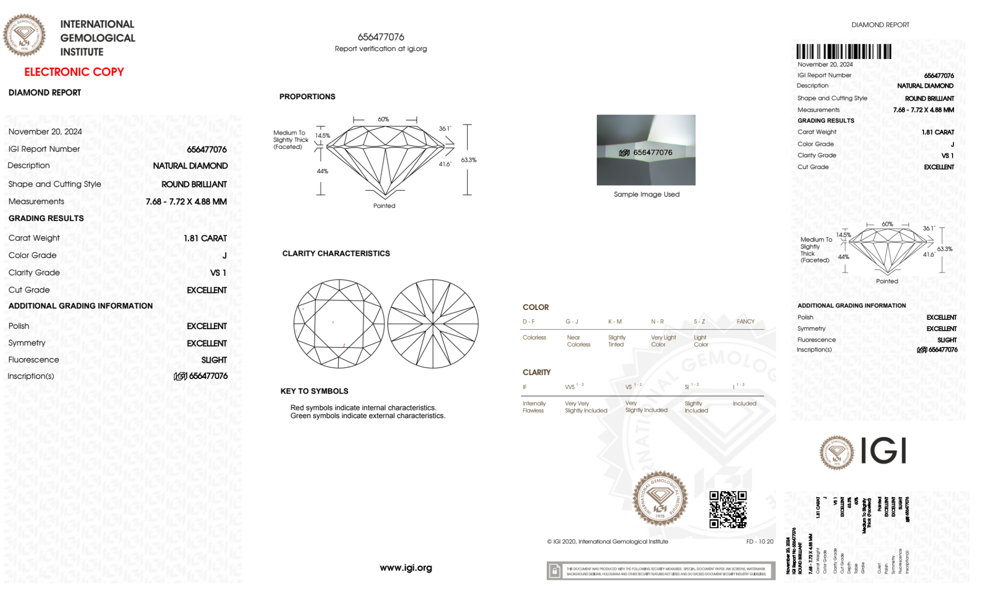Your 1.81 carat Round natural diamond is graded J color (Near Colorless), and you can read more about J color diamonds here.
