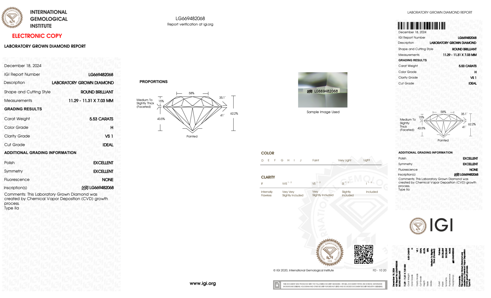 IGI CERTIFIED 5.53 Carat round lab Diamond