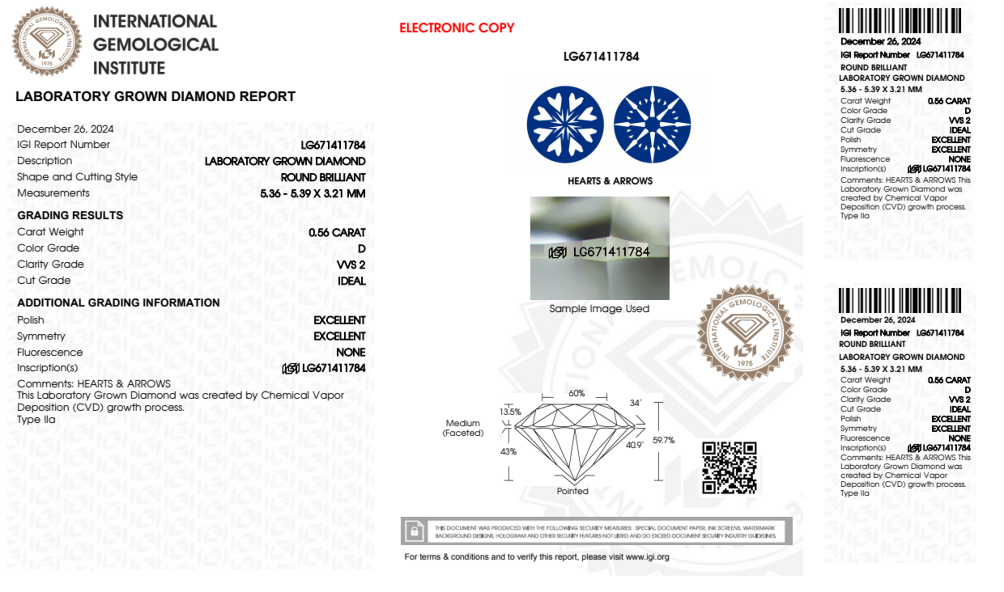 Your 0.56 carat Round lab diamond is graded D color (Colorless), and you can read more about D color diamonds here.