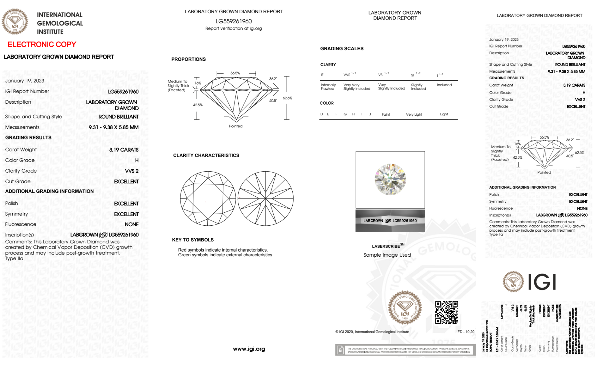 3.19 Carat round lab Diamond