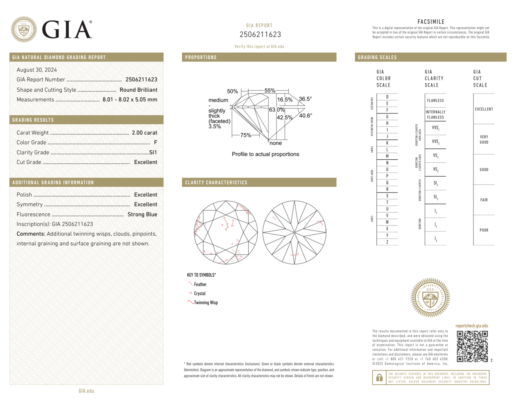 Your 2.00 carat Round natural diamond is graded F color (Colorless), and you can read more about F color diamonds here.
