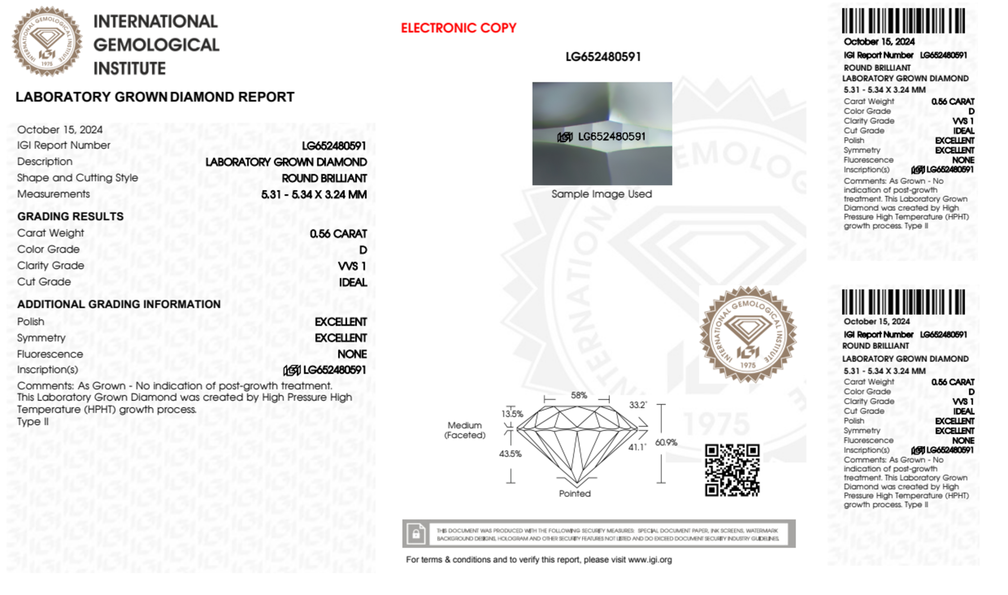 Your 0.56 carat Round lab diamond is graded D color (Colorless), and you can read more about D color diamonds here.