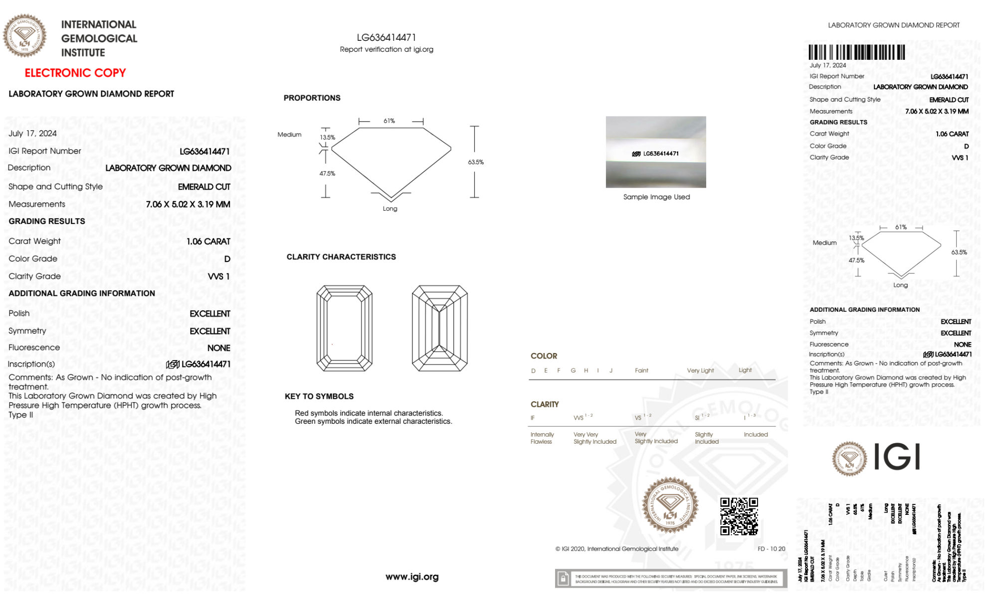 1.06 Carat emerald lab Diamond