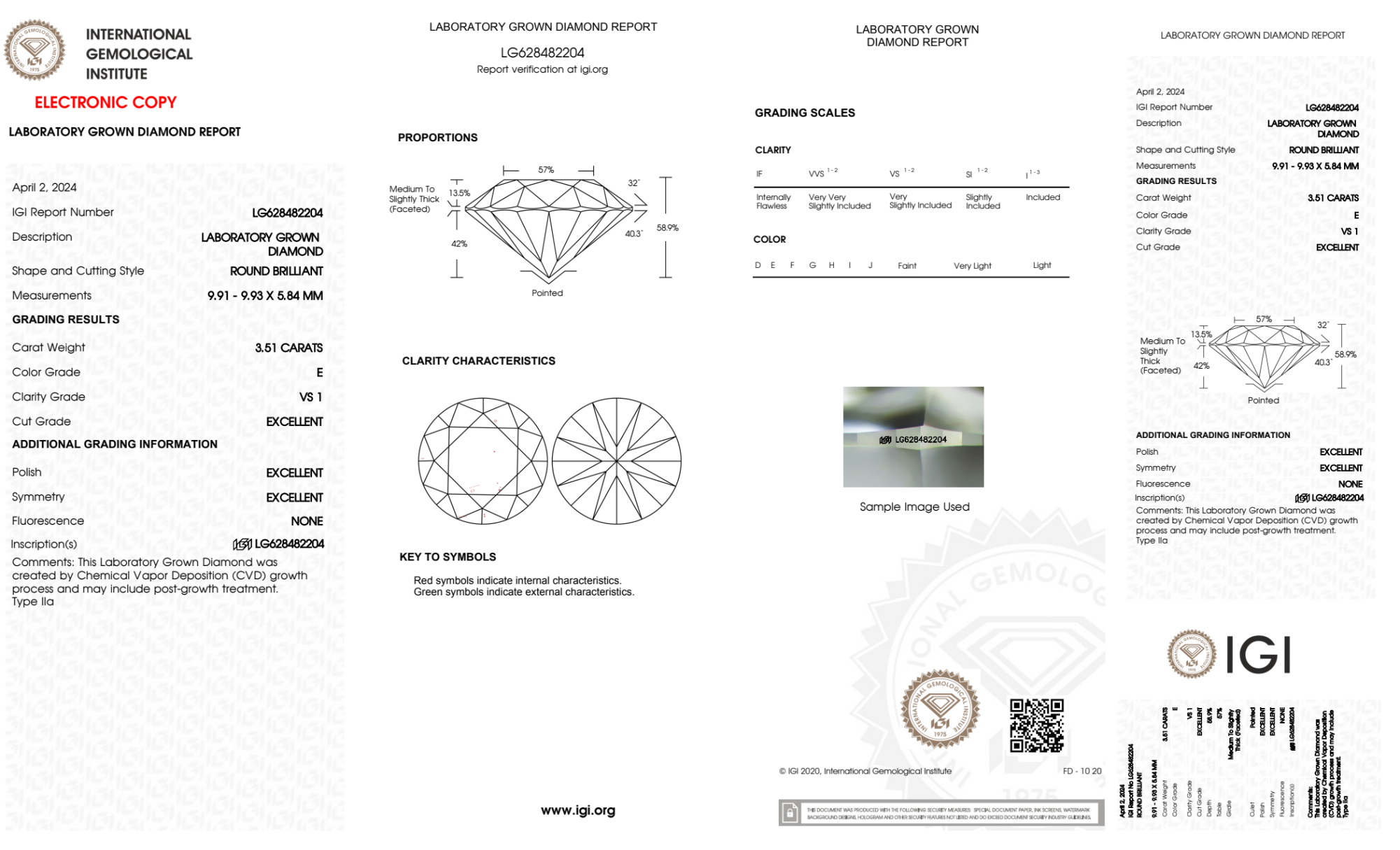 Your 3.51 carat Round lab diamond is graded E color (Colorless), and you can read more about E color diamonds here.