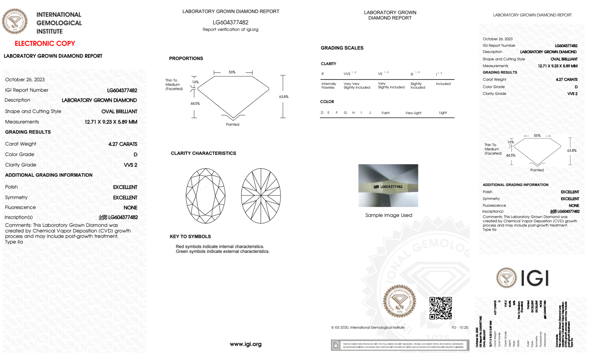 Your 4.27 carat Oval lab diamond is graded D color (Colorless), and you can read more about D color diamonds here.