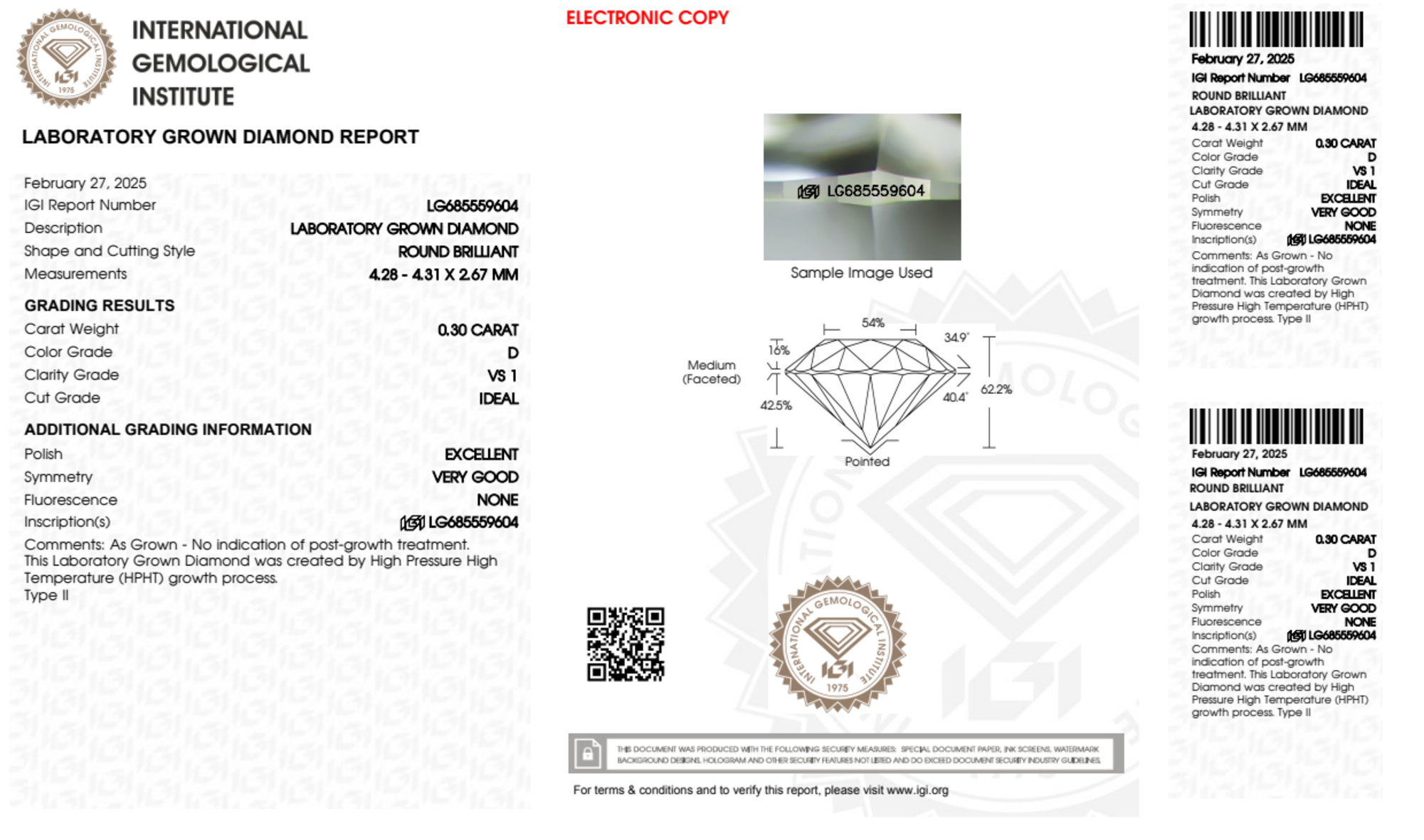 0.30 Carat round lab Diamond