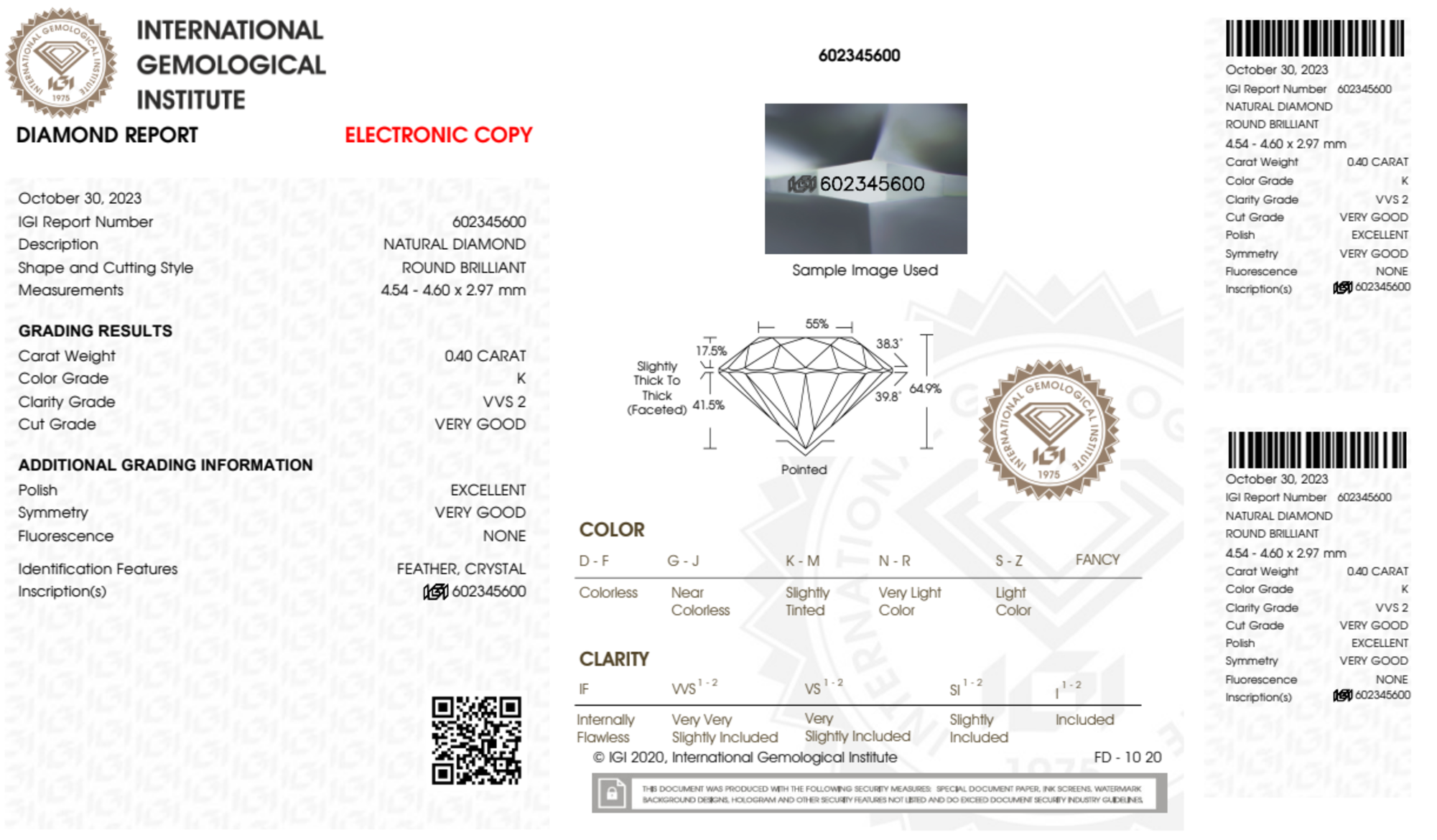 Your 0.40 carat Round natural diamond is graded K color (Faint Color), and you can read more about K color diamonds here.