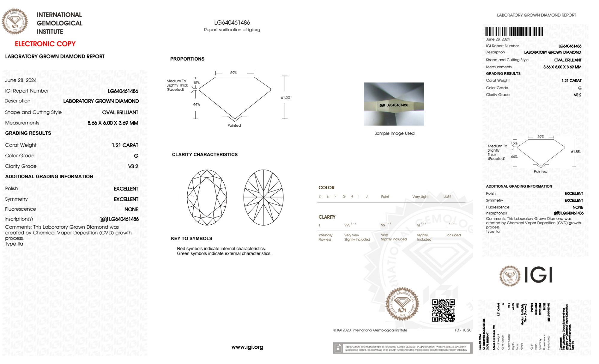 Your 1.21 carat Oval lab diamond is graded G color (Near Colorless), and you can read more about G color diamonds here.