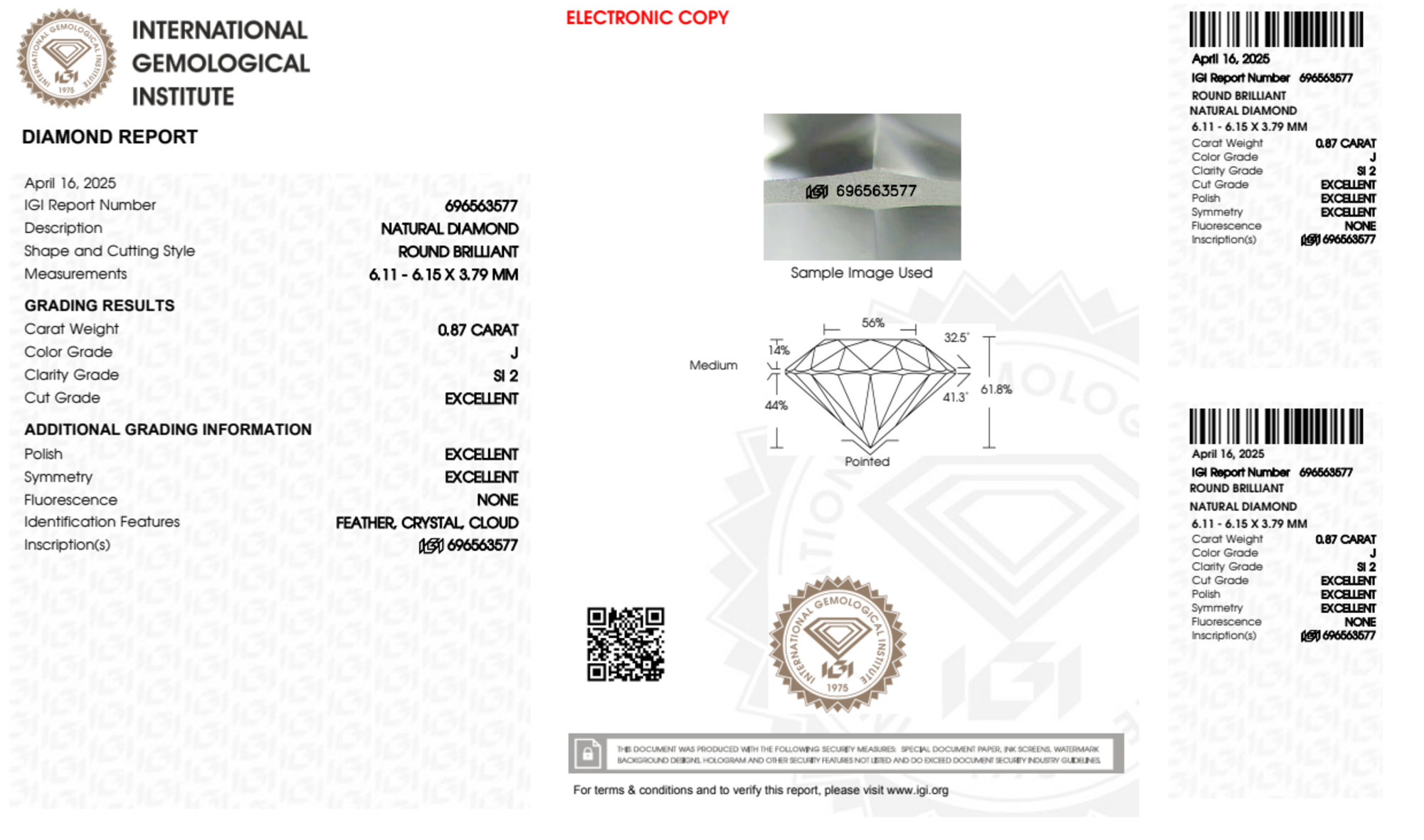Comparing natural diamonds online was easy, GIA certification is a big plus, being able to select ring and setting was excellent. It did take 4 weeks from click to delivery, but it was worth the wait, she loved the ring, and said yes, whew.