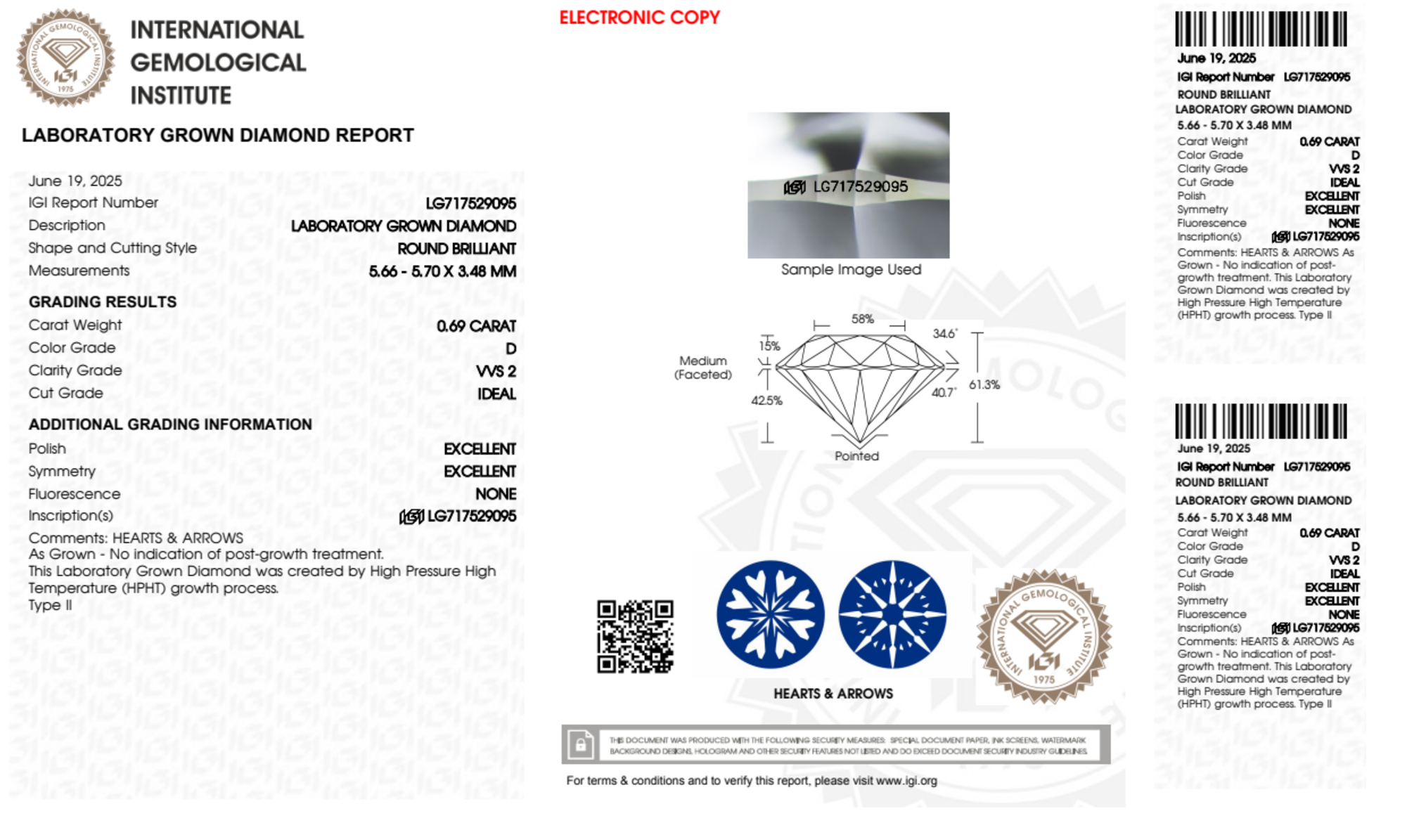 Your 0.69 carat Round lab diamond is graded D color (Colorless), and you can read more about D color diamonds here.