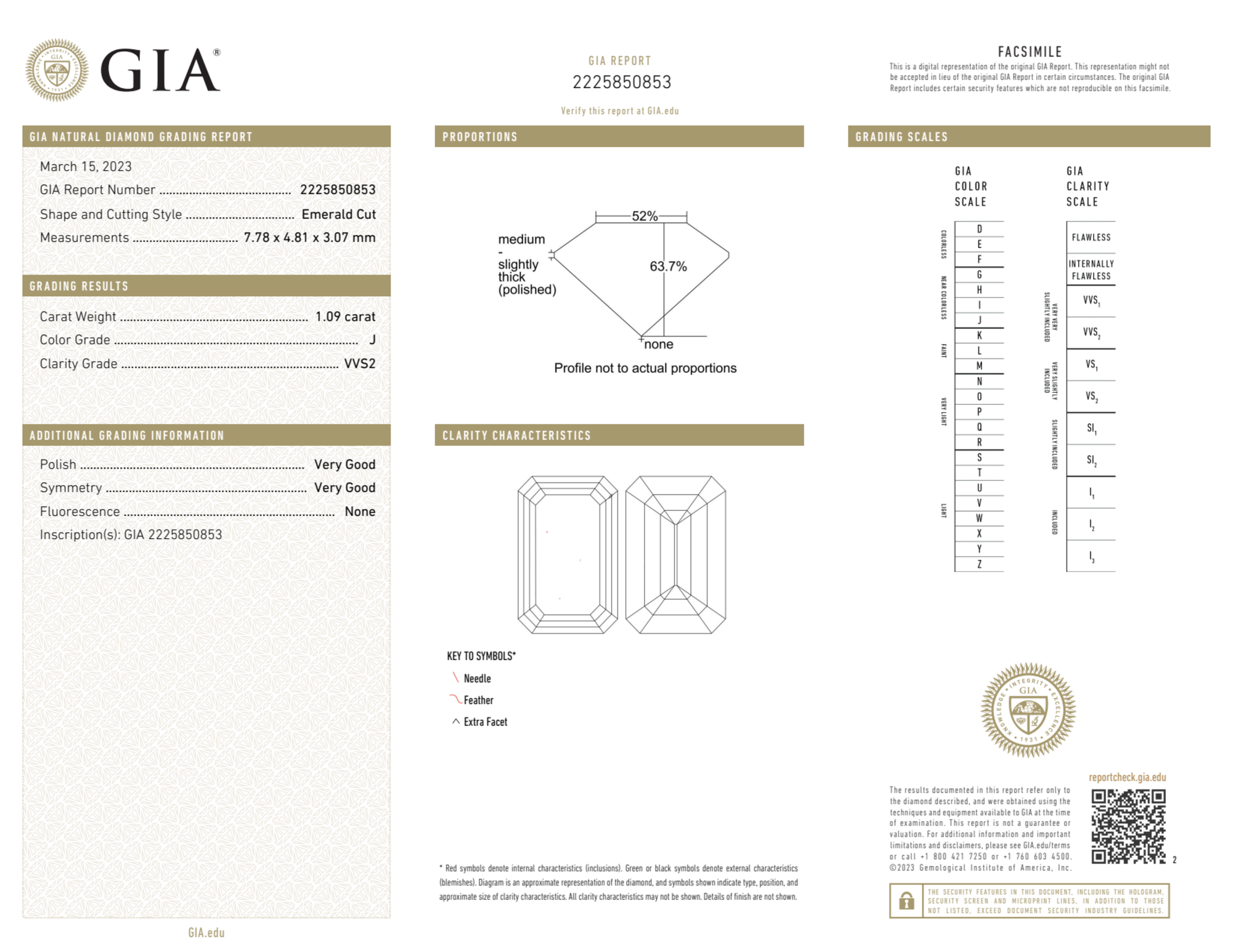 Your 1.09 carat Emerald natural diamond is graded J color (Near Colorless), and you can read more about J color diamonds here.