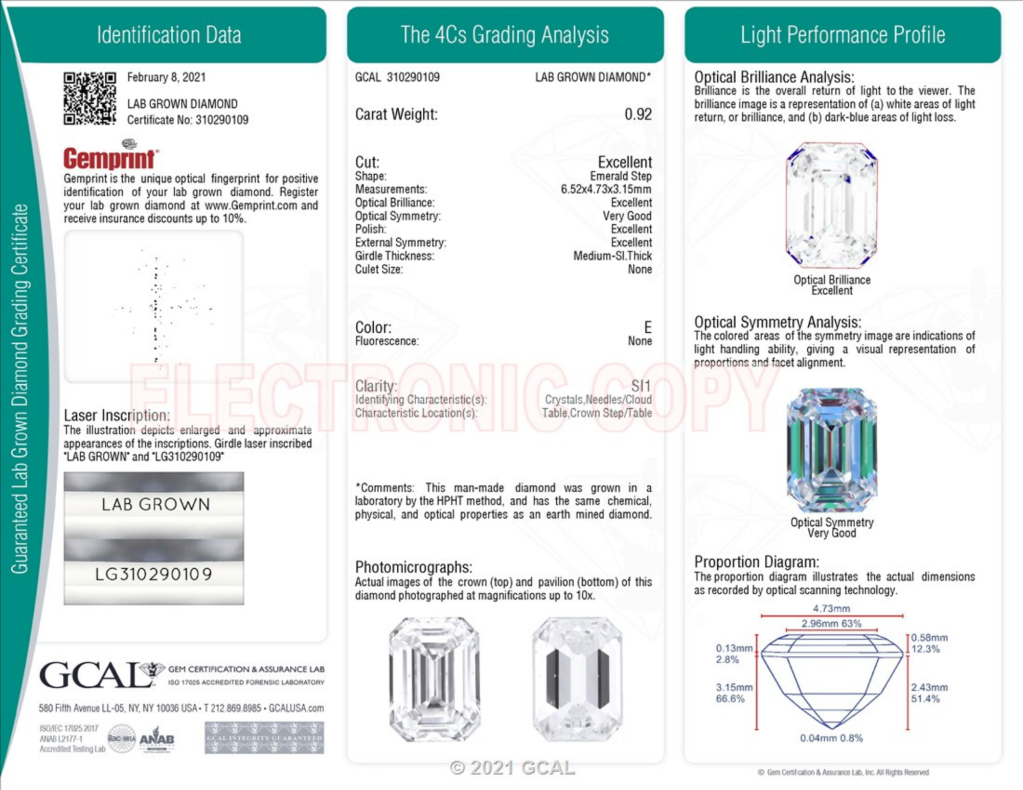 0.92 Carat emerald lab Diamond